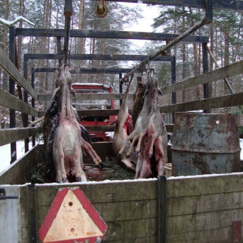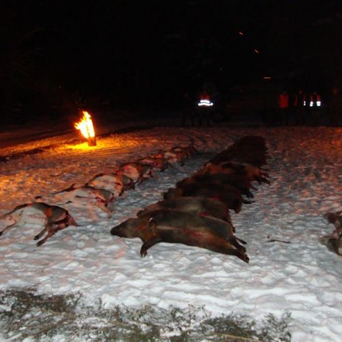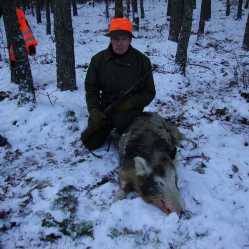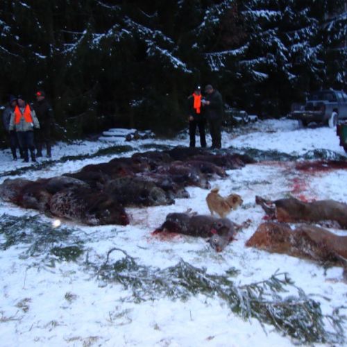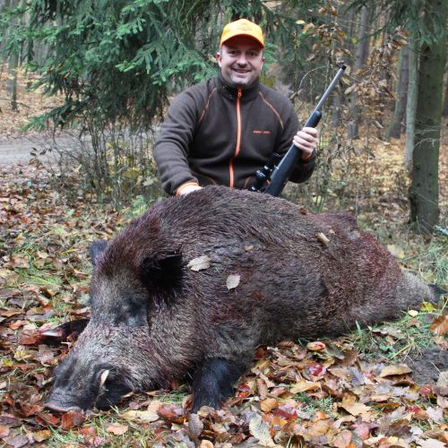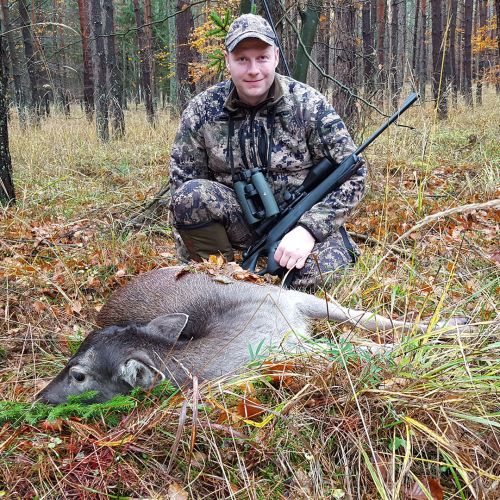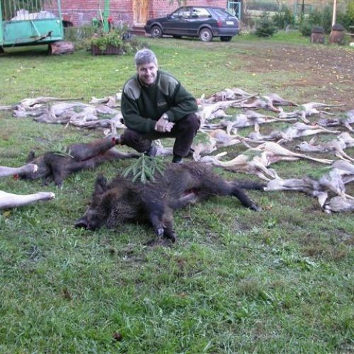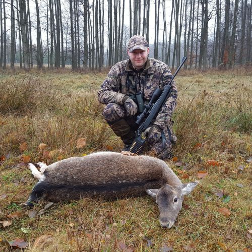 The Runowo hunting district, located in the northwest of Poland, spans a total area of 5,000 hectares, of which 2,700 hectares are forested, while the remaining 2,300 hectares consist of agricultural land, meadows, lakes, and wetlands. The forests in Runowo offer a varied landscape, with 40% coniferous forest, 35% oak, 15% birch, and 10% other tree species. The area is mainly flat. Runowo has 23 high seats, as well as 11 feeding places. Up to 3 hunters (2 for deer) can hunt at a time on individual hunts. Popular driven hunts are conducted for groups of at least 14 hunters in collaboration with the Lutowko hunting district.
