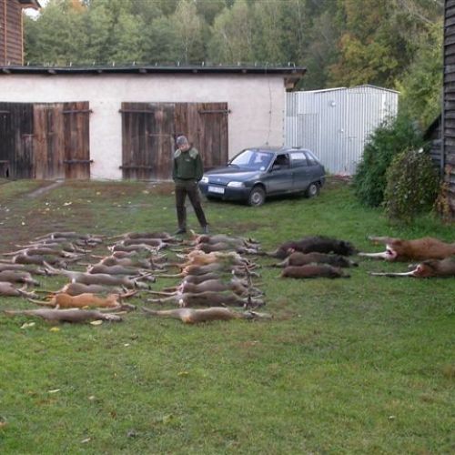 The wildlife population is diverse and well-managed, including roe deer, red deer, fallow deer, and wild boar. Each year, 22 roe deer bucks are harvested. Trophy-wise, most of the bucks weigh under 350 grams net, but some bucks are harvested weighing over 350 grams. The annual red deer quota is about 30 stags, with most of them having antler weights of 5-7 kg, although stags over 7 kg and even 8-9 kg are also harvested. The fallow deer population is healthy, with around 17 fallow bucks being harvested each hunting season, and the trophy quality is around average. Runowo is also home to a good population of wild boar, which are hunted both during individual hunts throughout the season and during driven hunts in the autumn and winter.