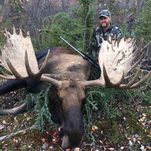 The population of moose here is incredibly dense, estimated to be 3 times higher than seen anywhere else in North America. It is estimated that there are up to 10,000 individuals resident in this district and there are more than 100 different different locations where our outfitter can position visiting hunters. The trophies of Alaska Yukon Moose are the largest of any moose, the average trophy size of bulls taken here lies around an impressive 60”. However, every season bulls of up to 70” are also taken.