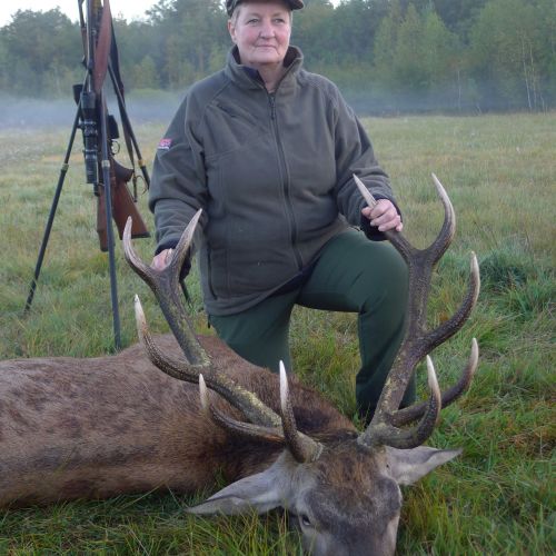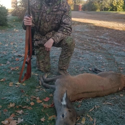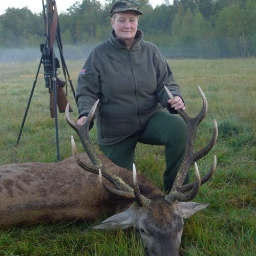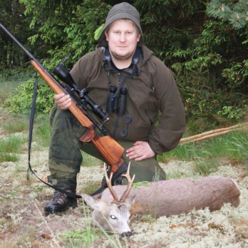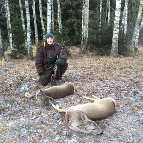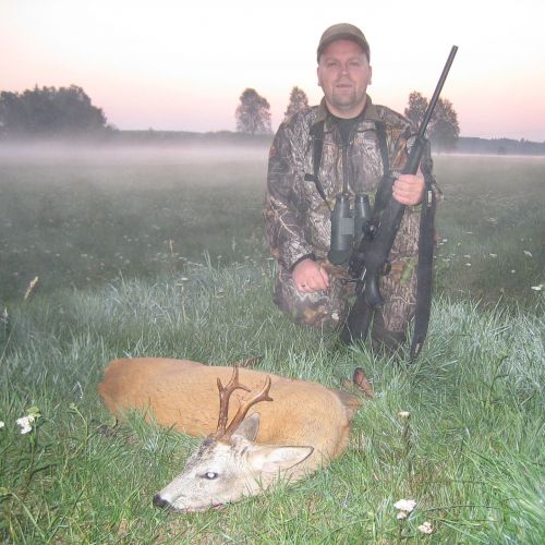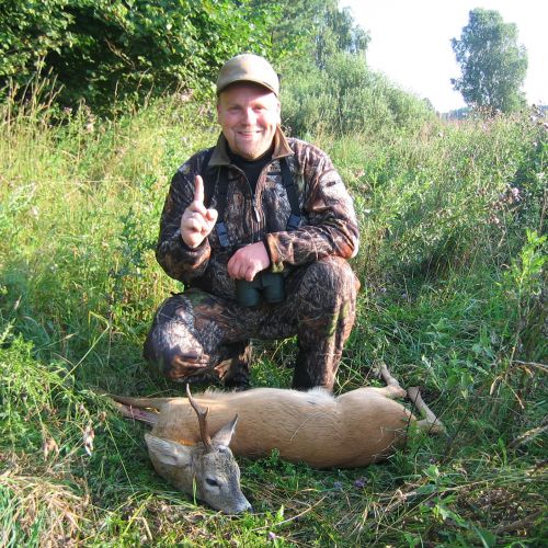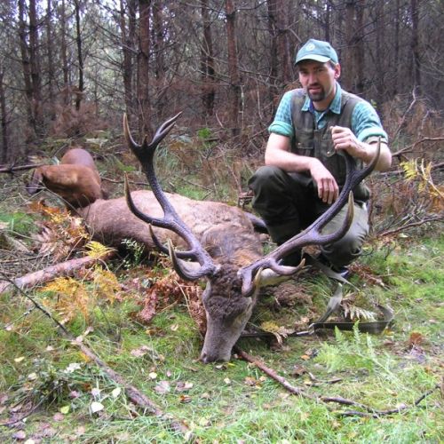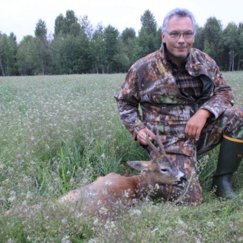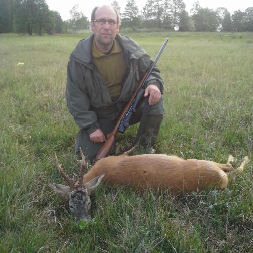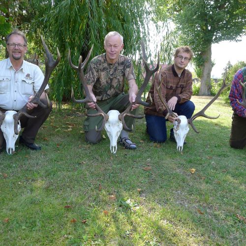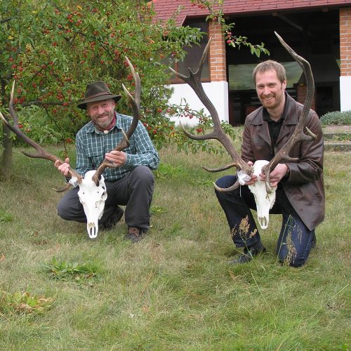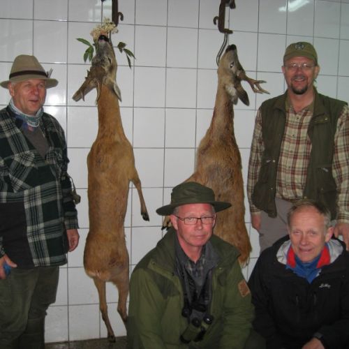 The district has excellent populations of red deer, but it also offers good roe buck hunting. Additionally, there are wild boar and a small population of fallow deer. Every year, around 30 roe deer bucks are shot. Trophy-wise, most of the bucks weigh under 300 grams net, but some bucks are harvested weighing over 300 grams, with some even over 350 grams. The annual red deer quota is 28 stags, most of which have a trophy weight of 4.5-6.5 kg. However, stags weighing over 7 kg are also shot each year.