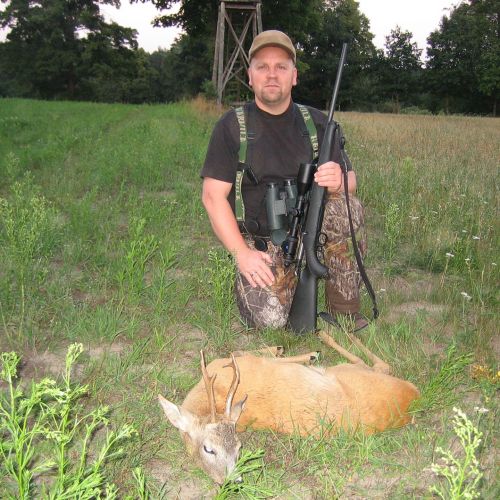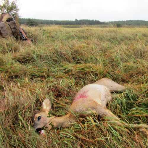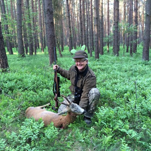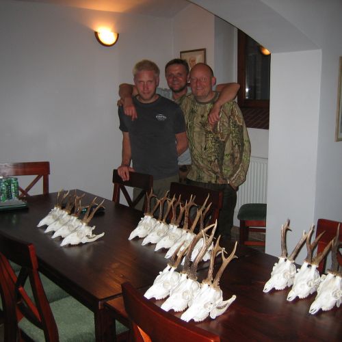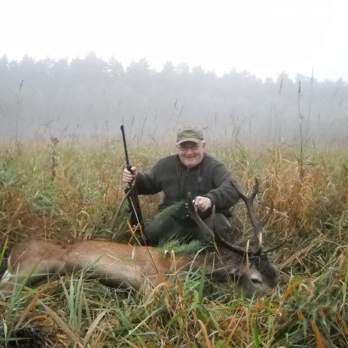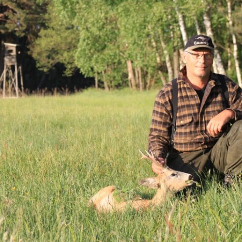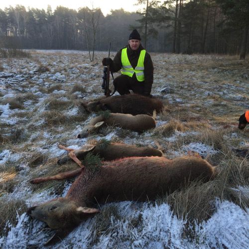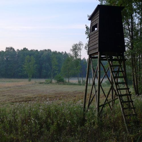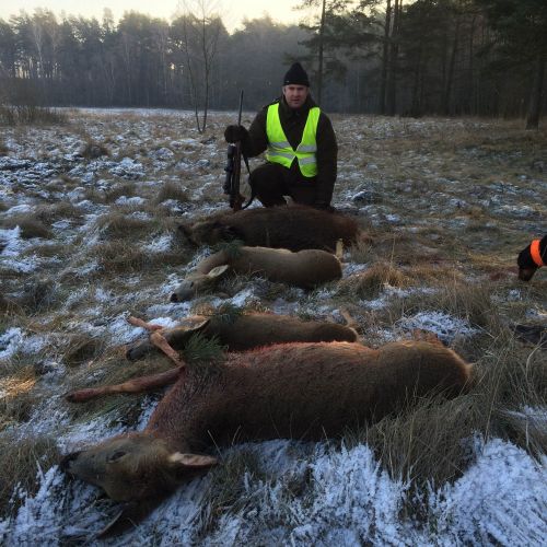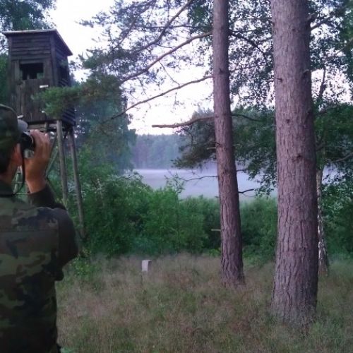 Our Wierzchlas hunting district covers a total area of 11,773 hectares, of which 7,068 hectares are forest, while the remaining 4,705 hectares consist of agricultural land, meadows, and wetlands. The forest is primarily coniferous, with scattered oak and birch. The area is mostly flat, with some gently undulating terrain, numerous larger and smaller lakes, and water holes. Wierzchlas has more than 100 high seats, as well as 30 feeding places. Up to 5 hunters can hunt at a time for roe deer bucks and red deer stags on individual hunts, while popular combined hunts can be arranged for 6-8 hunters.