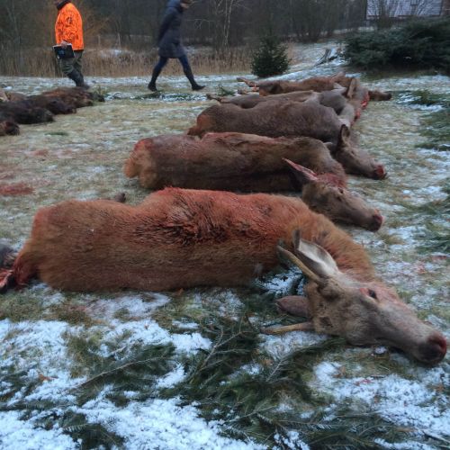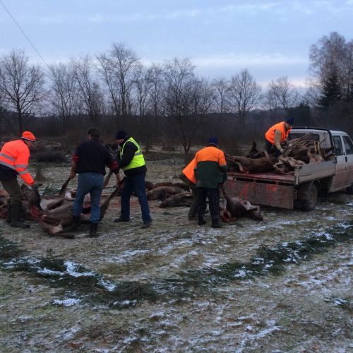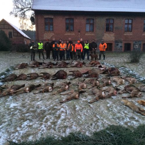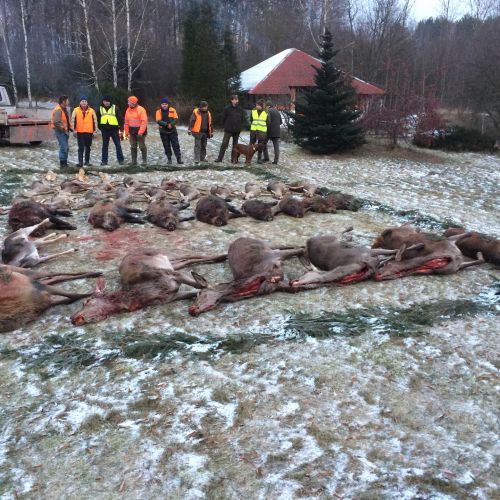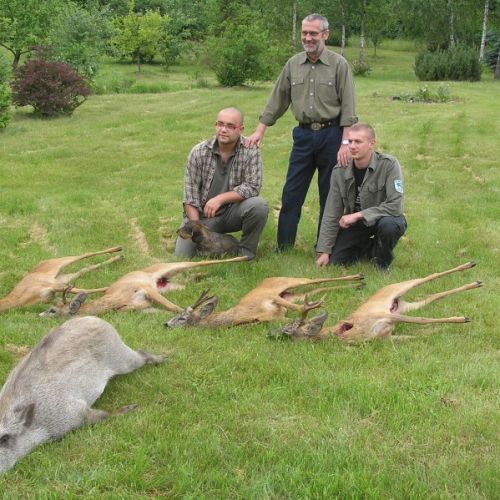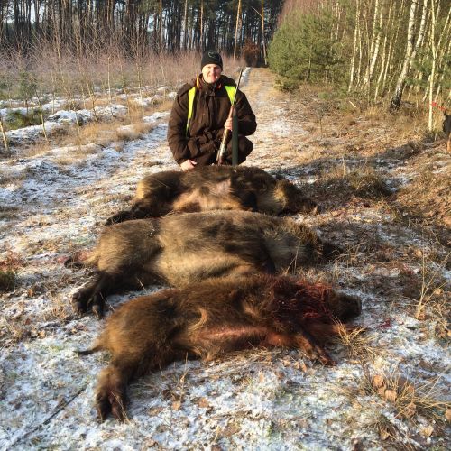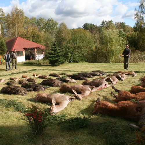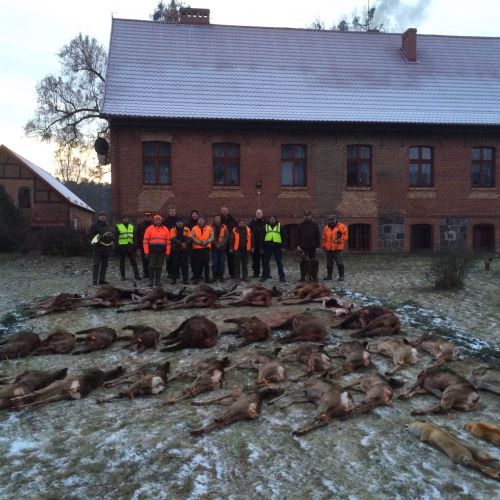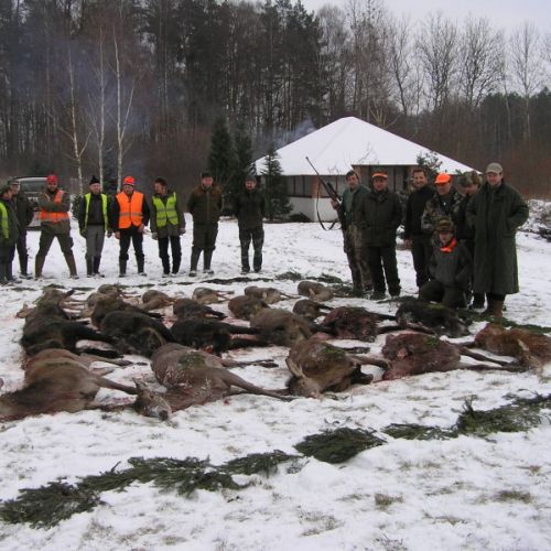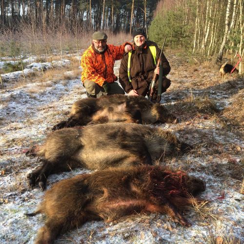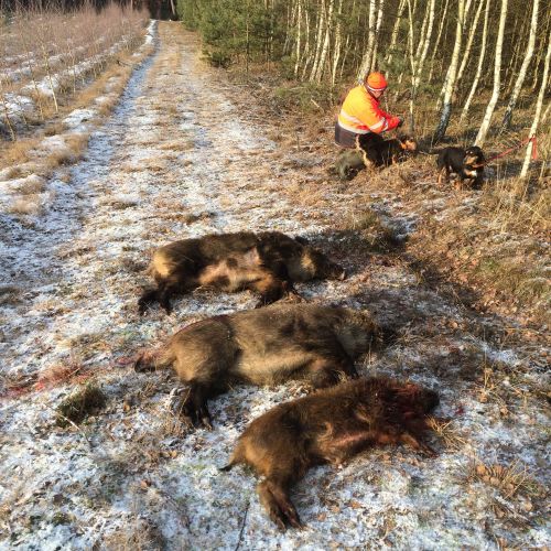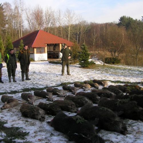 Currently, no fallow deer are released for hunting. Wild boars are still present at Wierzchlas, and they are hunted both on individual hunts throughout the season and on driven hunts/combined hunts during the autumn and winter months. The driven hunts are typically arranged for groups of 6-8 hunters, combined with individual hunting.