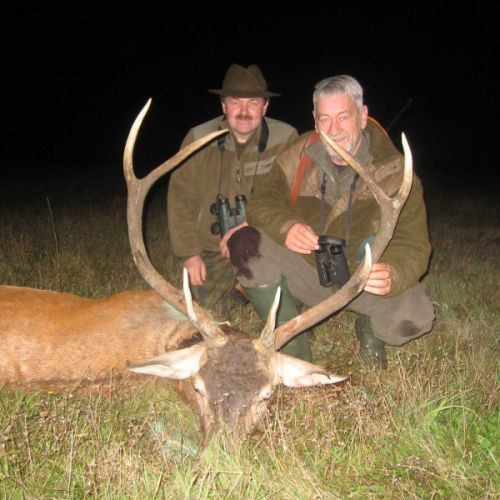 The combined hunt works as follows: at around 8:00 am, after a hearty breakfast, the day begins with driven hunts featuring small drives of varying durations. Around 12-1 pm, the driven hunt concludes, and hunters return to the accommodation for a break and lunch. Each hunter is then assigned a hunting guide for the rest of the afternoon and evening, which is spent on individual hunting. If the weather permits, wild boar hunting may continue into the evening – note that it is legal to use night vision for wild boar hunting. The parade will typically consist of a mix of red deer, wild boar, roe deer, and foxes, and the district expects shots to be taken at the game that comes forward to achieve a satisfactory result (though not necessarily stags).
