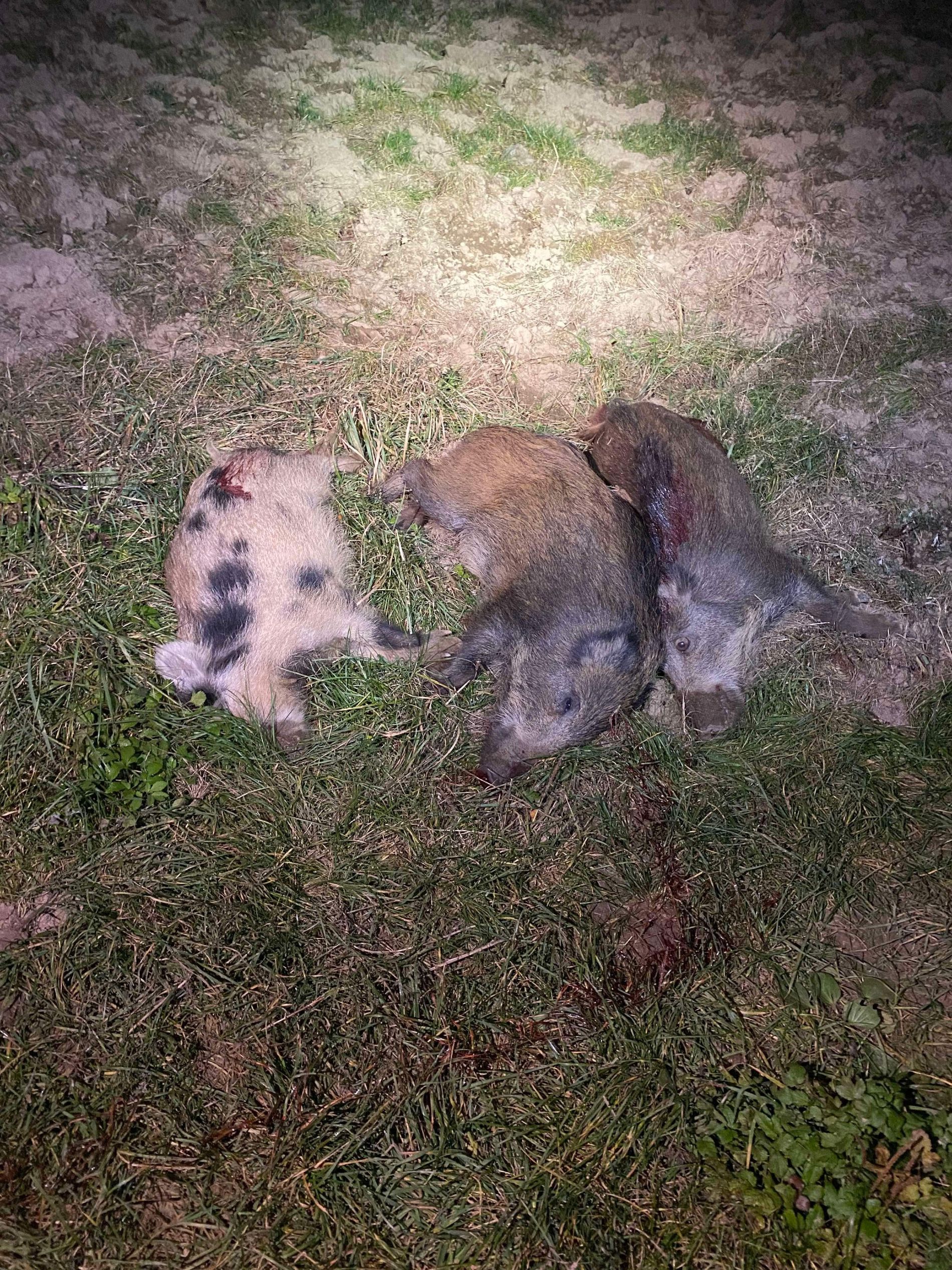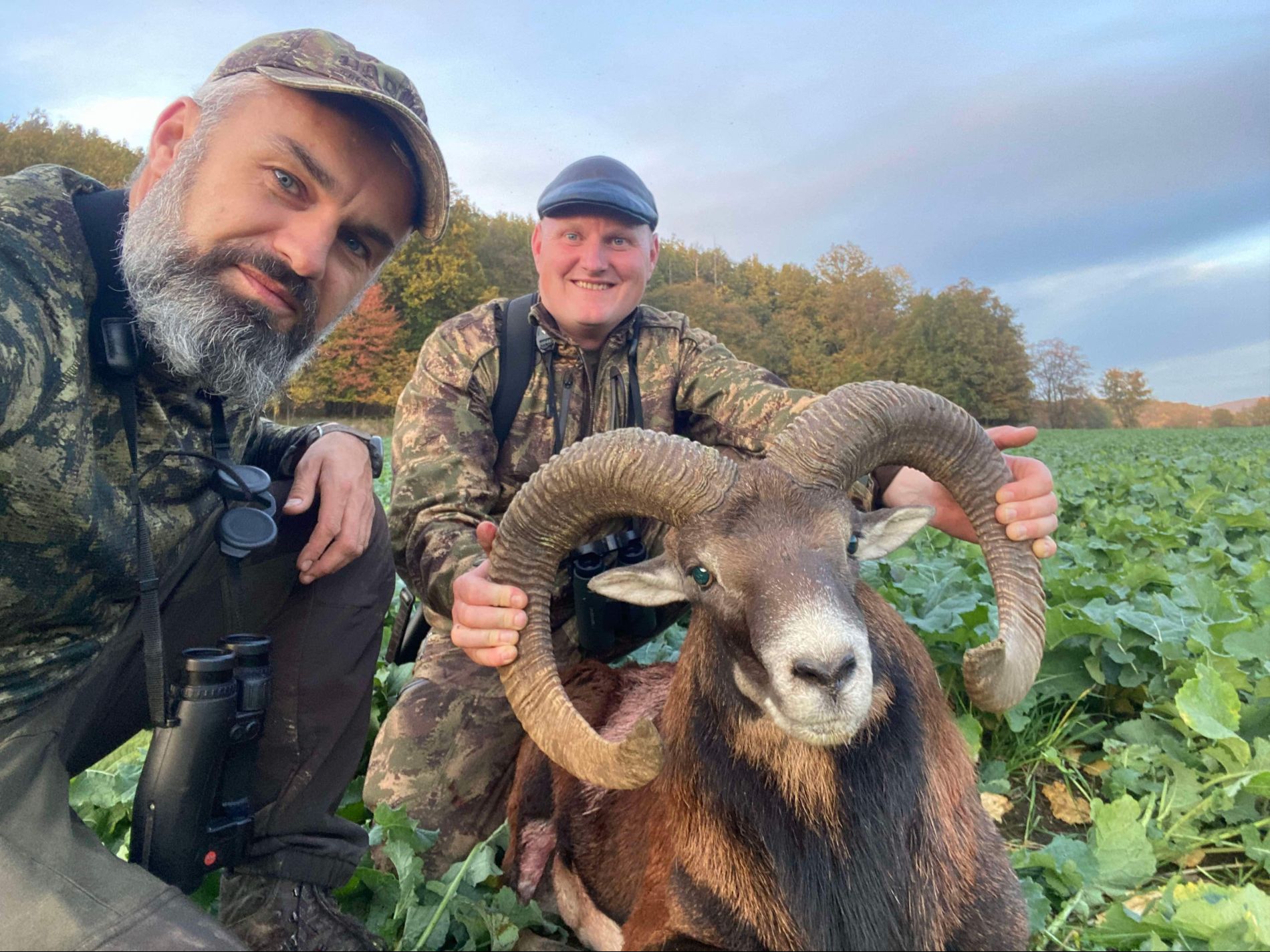 There were pigs and red deer everywhere we went. We saw over 80 pigs. We saw red deer and fallow deer, and over 100 mouflons. In total, we took down 2 beautiful mouflon rams, 5 pieces of red deer, 8 pigs, 1 doe, 1 roebuck, 4 raccoons, and 2 badgers during the 3 days of hunting.