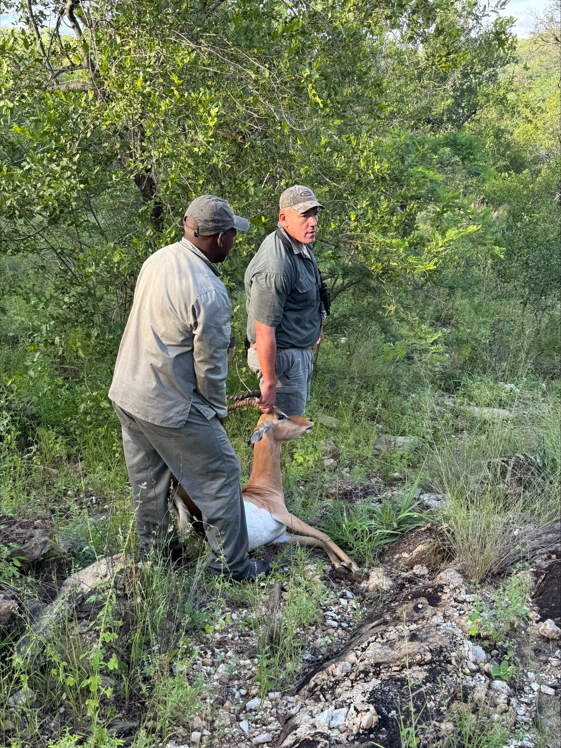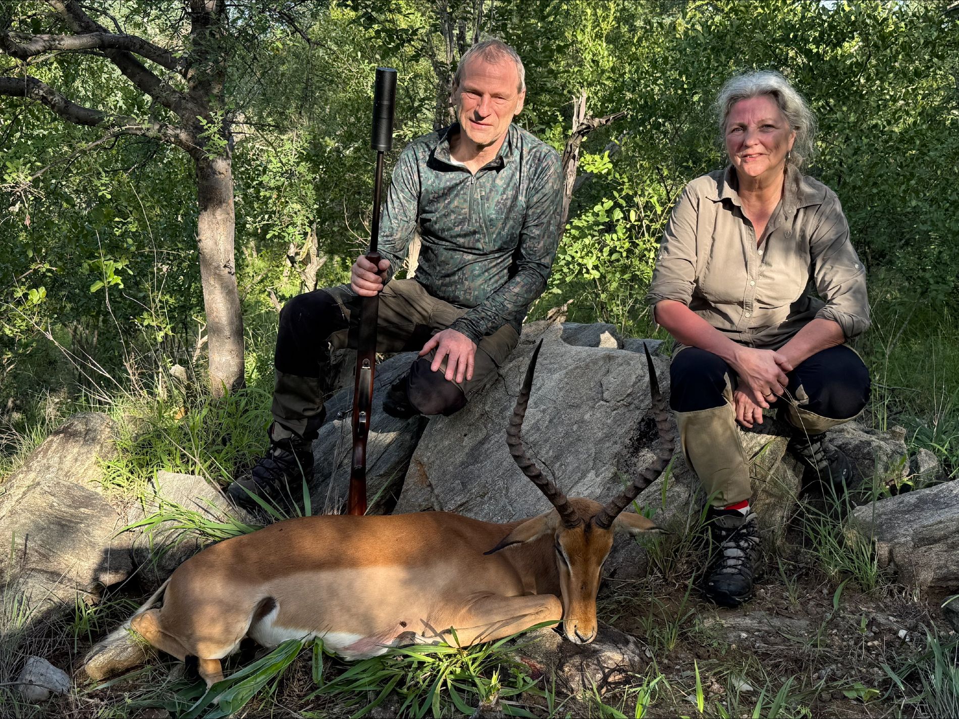 Hanne and John have just had an amazing experience at Balule River Lodge in South Africa. Their journey included thrilling safari adventures, fantastic cuisine, and a special hunting day where John's goal was to take down an impala. With great success, he accomplished it and secured an impressively beautiful impala. Congratulations!