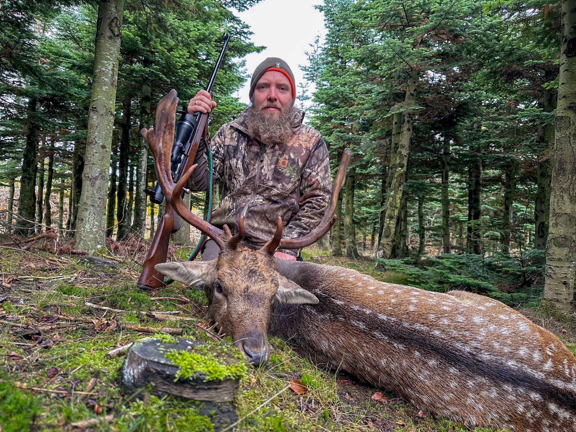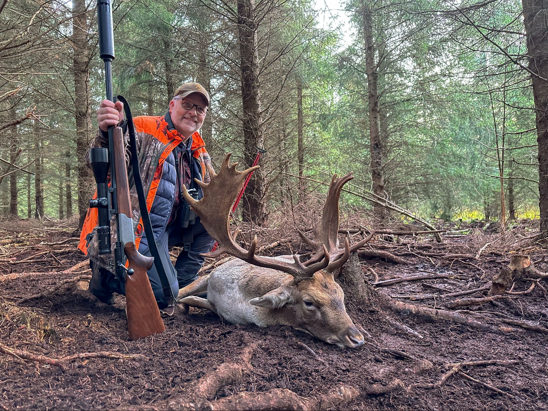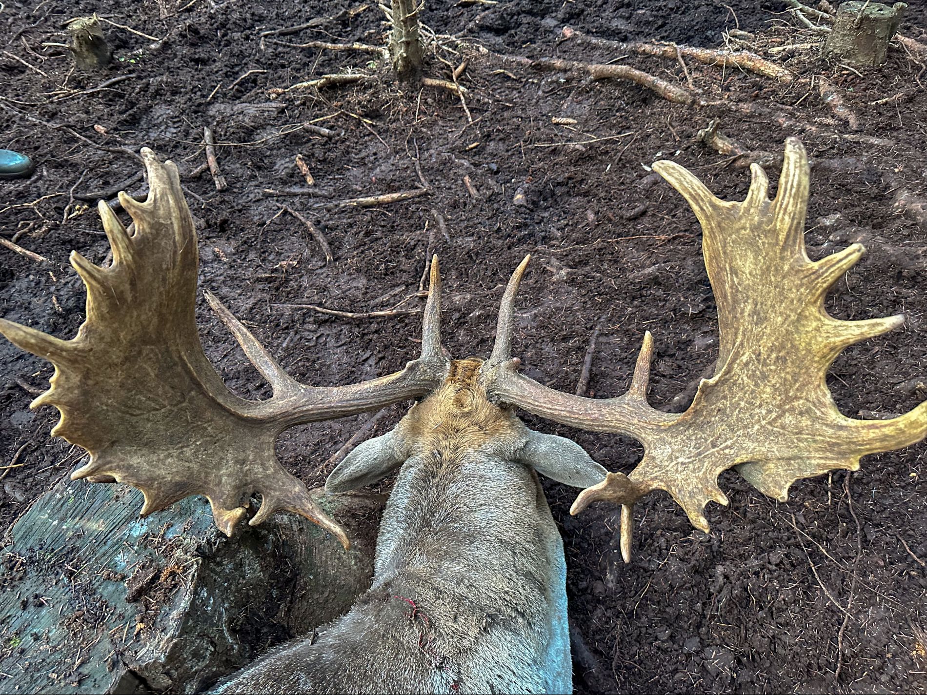 Kasper var heldig og skød en flighjort den første eftermiddag, efter at have hørt og set mange hjorte. Det var Kaspers allerførste dåhjort, så han var ovenud tilfreds.