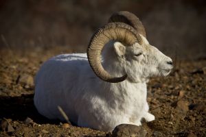 Scientific Name: Ovis dalli Subspecies: Dall Sheep (Ovis d. dalli): Alaska, Yukon and northern B.C. Stone Sheep (Ovis d. stonei): Southern Yukon and northern B.C. Habitat: Alpine pasture above the treeline up to 2.500 m. Description: Middle-sized wild sheep weighing around 120 kg and measuring up to1,05 m. over the shoulder, reaching a total body length of 1,55 m. The coat is almost pure white...