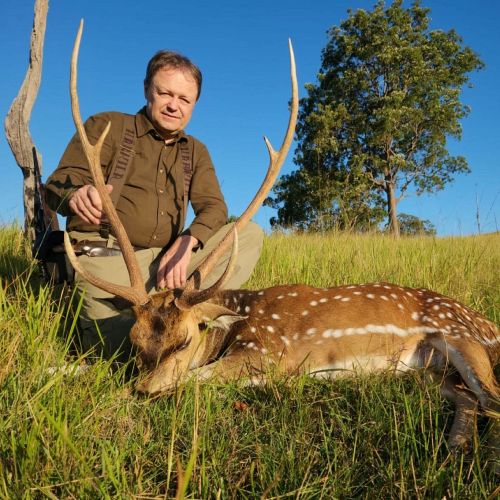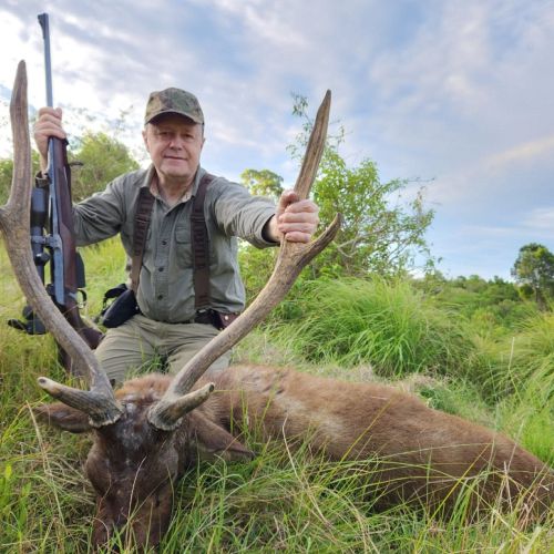 The hunting area Kingham is an 8,000-hectare cattle farm, of which approx. 2,500 hectares are fenced and are situated in beautiful surroundings in the mountains outside the city of Brisbane at an altitude of 600 metres. The area is surrounded by approx. 40,000 hectares of national forest, which is why only very few people live in the area and hunting pressure is very minimal. On the hunt you can...