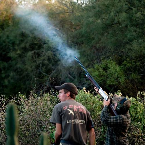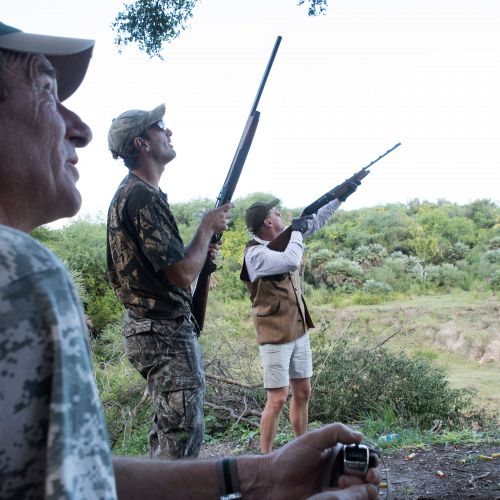 A typical hunting day starts with a good breakfast in the lodge, after which you will drive to the hunting district. The hunting guides will already have been orientated on where the doves are flying, so they can make sure they place their hunters in the optimal areas. When you arrive in the hunting district each hunter will be assigned an experienced “bird boy” who will show the individual hunters to their place and make sure that the hunter is supplied with cartridges, refreshments etc. during the shoot.
